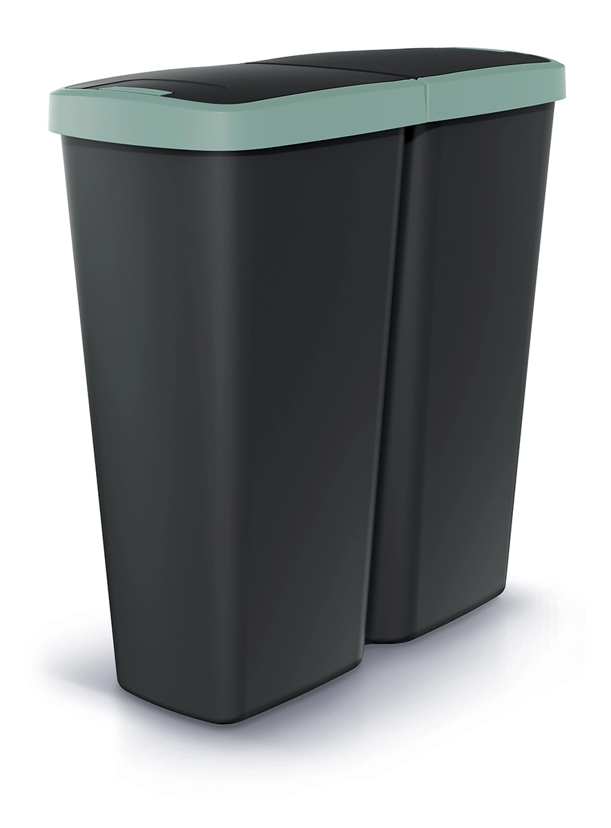 Der Prosperplast Compacta Q Duo bietet eine smarte Lösung für die tägliche Mülltrennung. Ein Innenbehälter mit doppeltem Deckel ermöglicht die Trennung von z. B. Restmüll, Kunststoff oder Papier mithilfe eines oder zweier Beutel. Die moderne Kombination aus schwarzem Korpus und hellgrünem Deckel passt in jedes Interieur.
