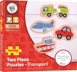 Dieses Set aus Holzpuzzles bietet vier beliebte Verkehrsmittel, die Kinder aus zwei robusten Teilen leicht zusammensetzen. Einfache Formen, kräftige Farben und die angenehme Haptik des Holzes laden zum wiederholten Spielen ein und fördern ganz natürlich die Sprachentwicklung, das Erkennen von Formen und Farben sowie die Konzentration.