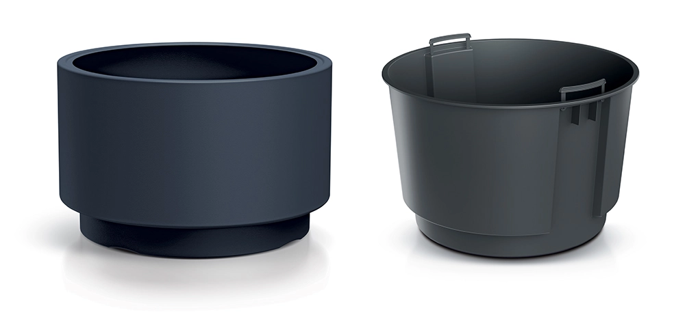 Der herausnehmbare Einsatz erleichtert Bepflanzung, Pflege und Bewässerung und hält die Umgebung rund um den Blumentopf sauber.