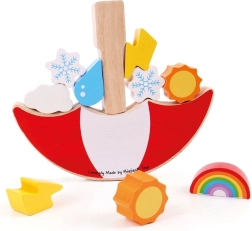 Wie hoch könnt ihr die Wetterteile stapeln und ausbalancieren? Dieses fesselnde Balancespiel verbindet Spaß und Lernen: Kinder entwickeln Koordination und logisches Denken, wenn sie unterschiedlich geformte und gewichtete Teile auf den schaukelnden Regenschirm legen. Jeder Zug erfordert Konzentration und feinfühliges Vorgehen – wer zuletzt erfolgreich platziert, gewinnt!