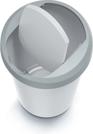 Der Mülleimer Compacta R Flap mit einem Volumen von 40 Litern ist die ideale Wahl für die tägliche Mülltrennung und -aufbewahrung. Dank des robusten Kunststoffs ist er leicht, einfach abwaschbar und für den langfristigen Einsatz geeignet. Der elegante aschgraue Korpus mit hellgrauem Deckel passt in moderne Küchen, Büros und Gemeinschaftsräume.
