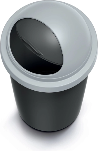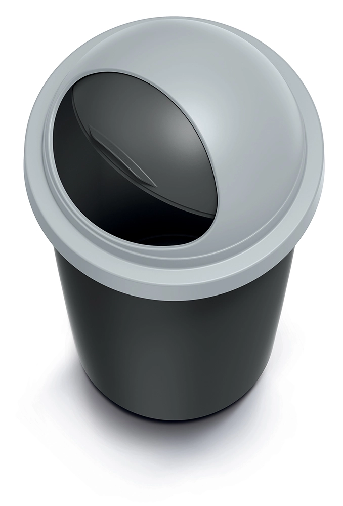 Der stylische Eimer mit Schwingdeckel bietet ein großzügiges Volumen von 30 Litern in einem kompakten Gehäuse und passt damit hervorragend in kleinere Küchen, Büros oder Flure. Die robuste Kunststoffkonstruktion sorgt für eine lange Lebensdauer und einfache Pflege, während die Kombination aus recyceltem Schwarz und Hellgrau sich mühelos in verschiedene Interieurs einfügt.
