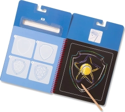 Unter der schwarzen Schicht verbergen sich leuchtende Motive von PAW PATROL. Kinder erstellen mühelos eindrucksvolle Bilder ganz ohne Farben oder Kleber.