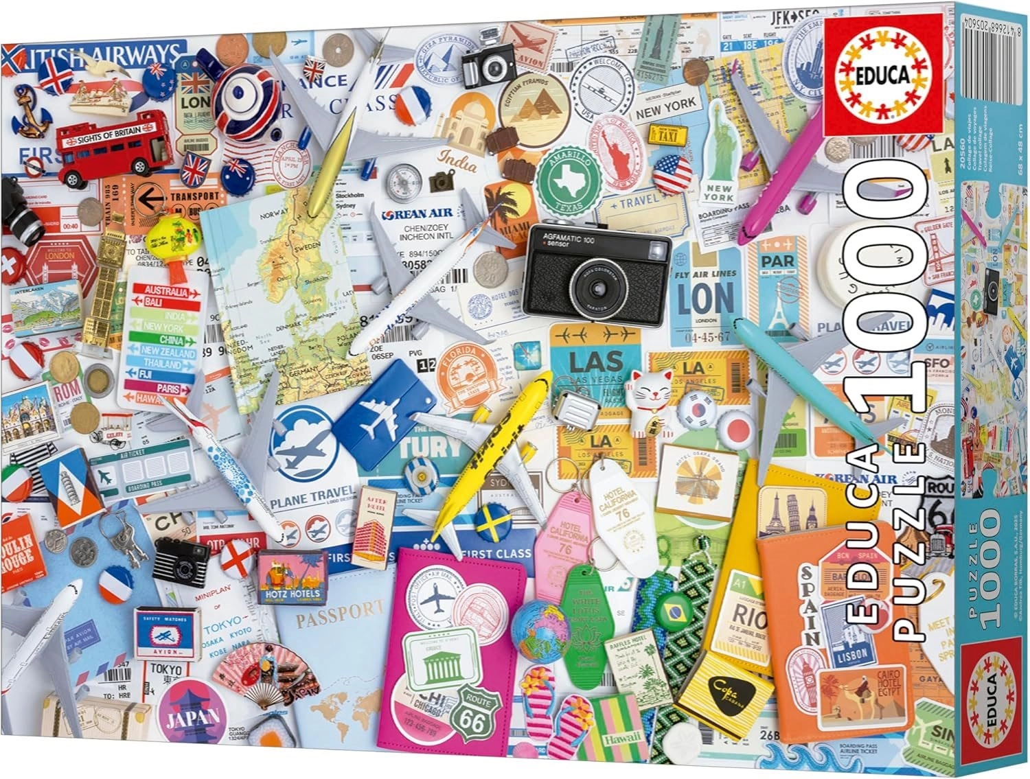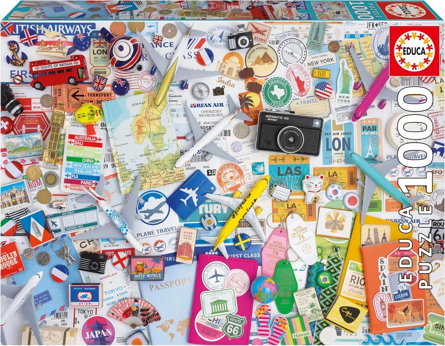 Eine stilvolle Collage weltweiter Destinationen macht das Puzzeln zu erholsamer Auszeit und zugleich zur Herausforderung. Dank präzisem Stanzverfahren und hochwertiger Pappe passen die Teile perfekt ineinander und das fertige Bild kommt an der Wand hervorragend zur Geltung.