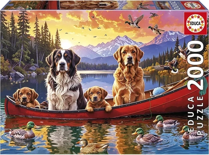 Das Premium-Puzzle von EDUCA erfreut jeden Tierliebhaber und begeisterten Puzzler. Das detailreiche Motiv der Hundefamilie auf dem Boot kommt im großen Format von 96 × 68 cm hervorragend zur Geltung, wodurch es sich ideal zum anschließenden Einrahmen eignet. In der Packung finden Sie außerdem FIX PUZZLE Kleber gratis, sodass Sie das Ergebnis leicht bewahren können.