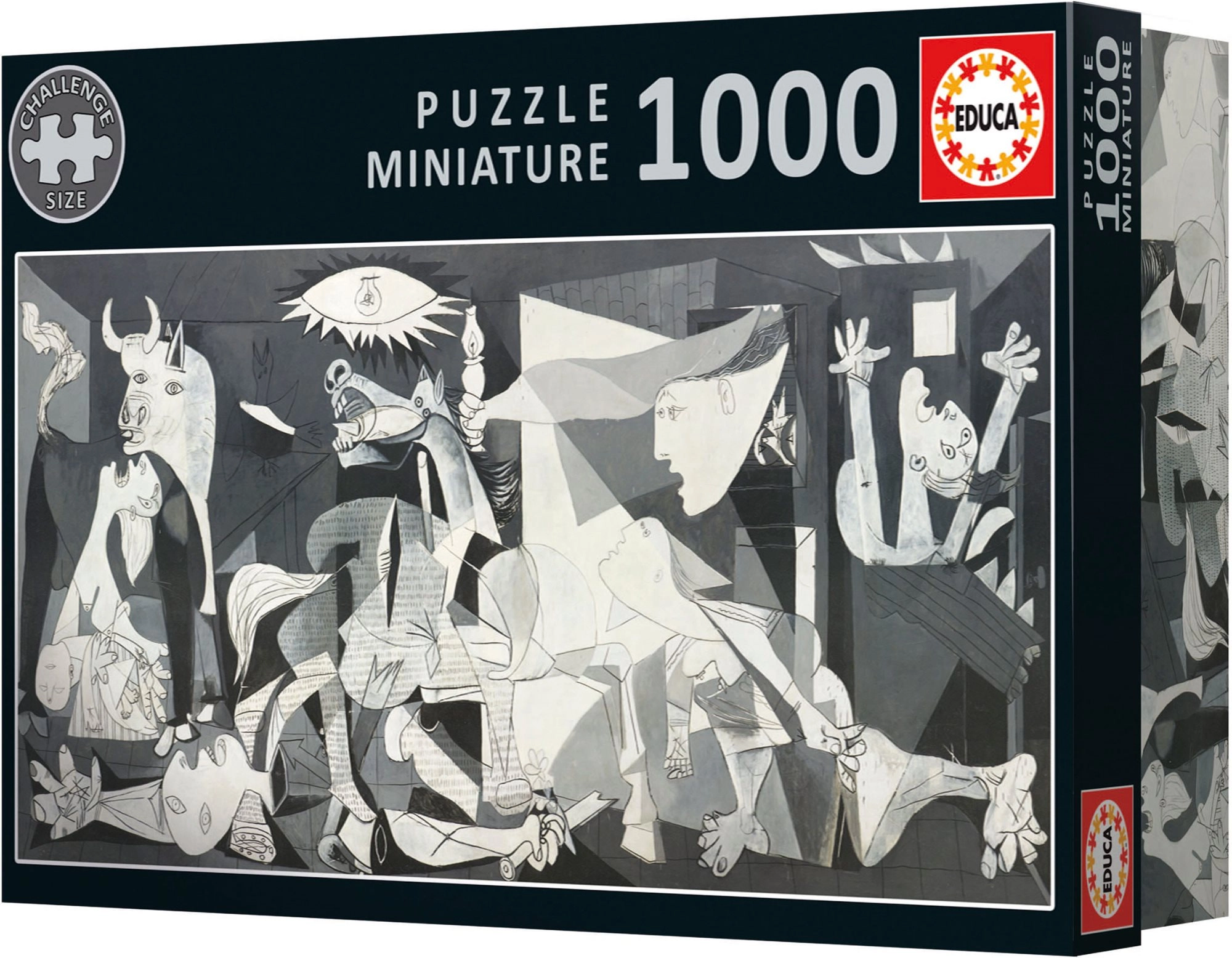 Genießen Sie die präzise Verarbeitung und das außergewöhnliche Motiv eines der berühmtesten Gemälde des 20. Jahrhunderts. Das Educa Panorama-Miniaturpuzzle Guernica ist die ideale Wahl für Kunstliebhaber und anspruchsvollere Puzzler, die wenig Platz haben, aber einen großen visuellen Effekt wünschen.