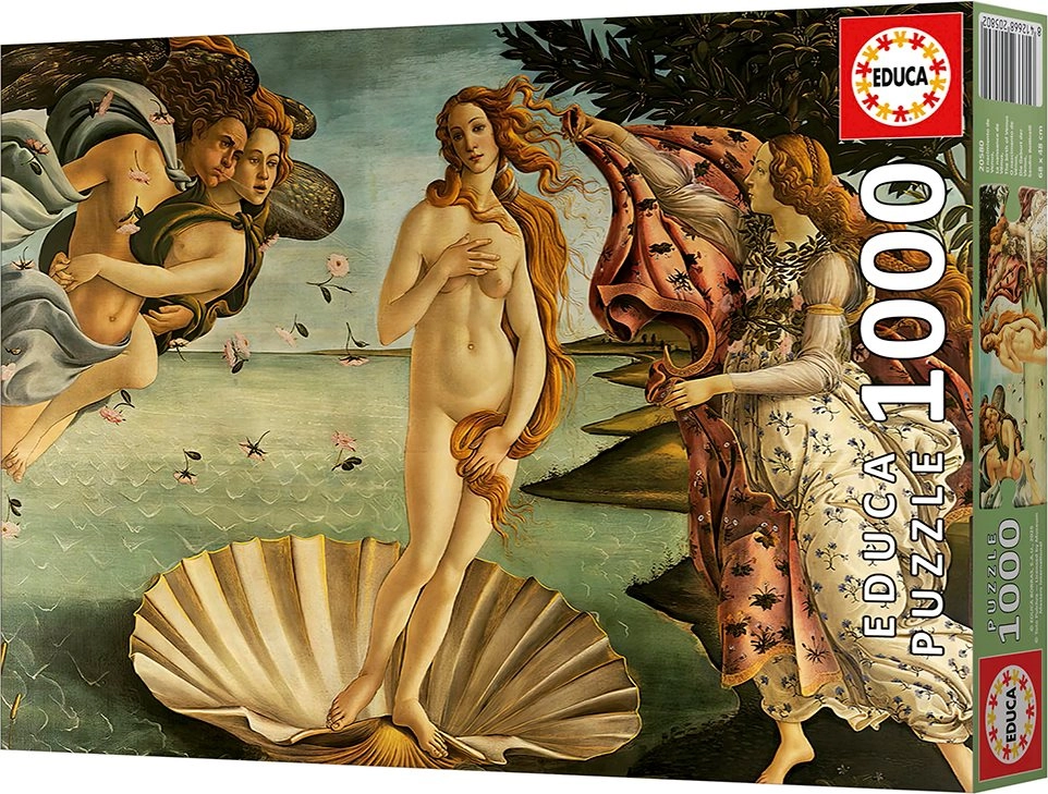 Genießen Sie Entspannung mit dem hochwertigen EDUCA-Puzzle, inspiriert vom Meisterwerk Die Geburt der Venus. Die Packung enthält 1000 Teile, das Maß nach dem Zusammensetzen beträgt ca. 68 × 48 cm und im Lieferumfang ist Kleber gratis für eine einfache Fixierung des fertigen Bildes enthalten.