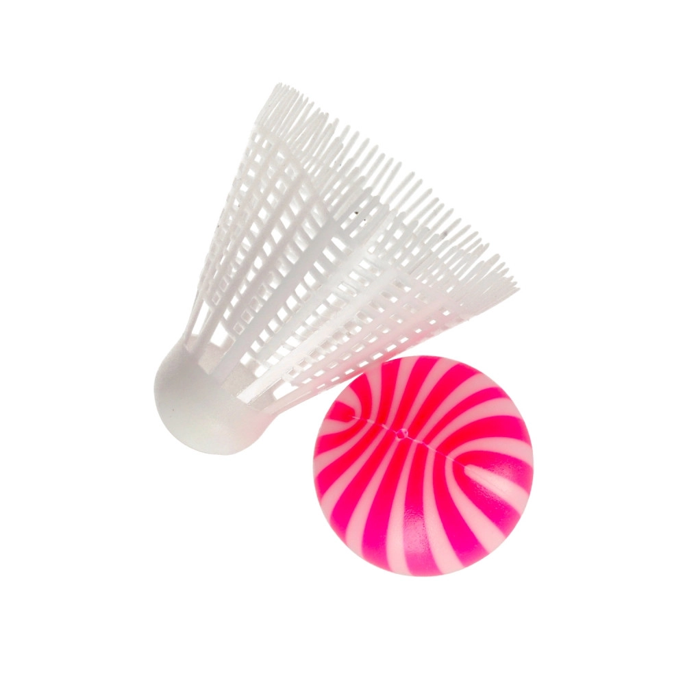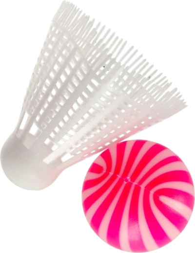 Enthalten sind ein Kunststoff-Federball und ein weicher Ball, sodass Kinder den Spielstil ganz nach Wunsch wählen können.