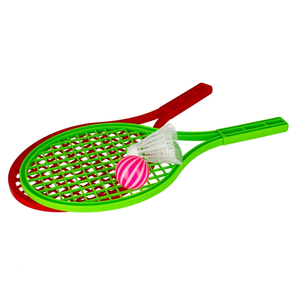 Dieses bunte Schlägerset ist eine hervorragende Wahl für Garten, Spielplatz oder Urlaub. Dank der leichten Kunststoffkonstruktion liegt es gut in der Hand, ist leicht zu handhaben und hält unbeschwertem Spielen stand. Im Lieferumfang sind sowohl ein Federball für Badminton-ähnliches Spiel als auch ein weicher Ball für vielseitiges Hin-und-her-Spiel enthalten.