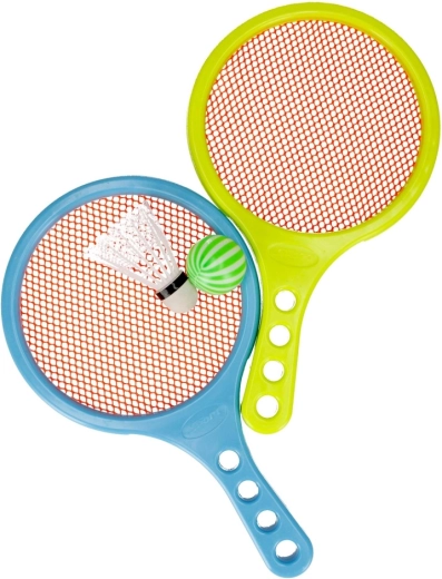 Dieses farbenfrohe Set ist eine hervorragende Wahl, um Kinder an Rückschlagsportarten heranzuführen. Dank der leichten Kunststoffschläger mit den Maßen 32 × 19 cm lernen Kinder schnell den richtigen Griff und die Koordination der Bewegungen. Gespielt werden kann sowohl mit dem Federball als auch mit dem weichen Ball – je nach Laune und Bedingungen.