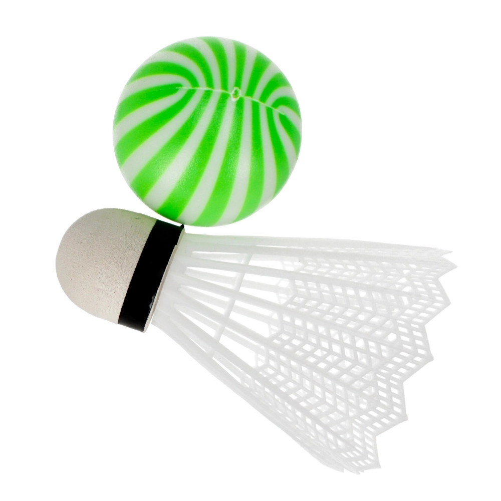 Enthalten sind sowohl ein Federball als auch ein weicher Ball. Kinder können wählen, ob sie „leichten Badminton“-Spaß möchten oder einfaches Hin-und-her-Spielen mit dem Ball.