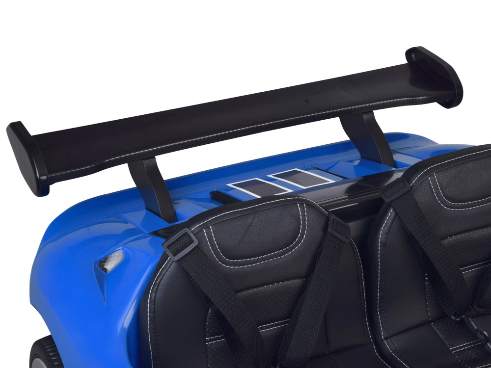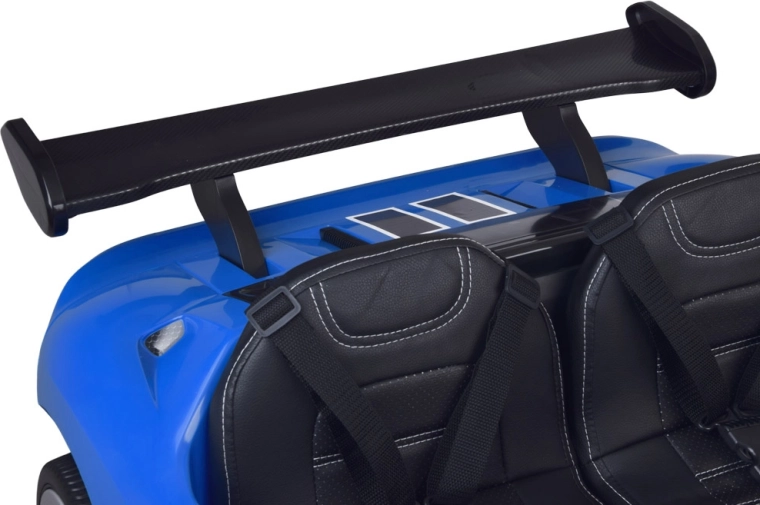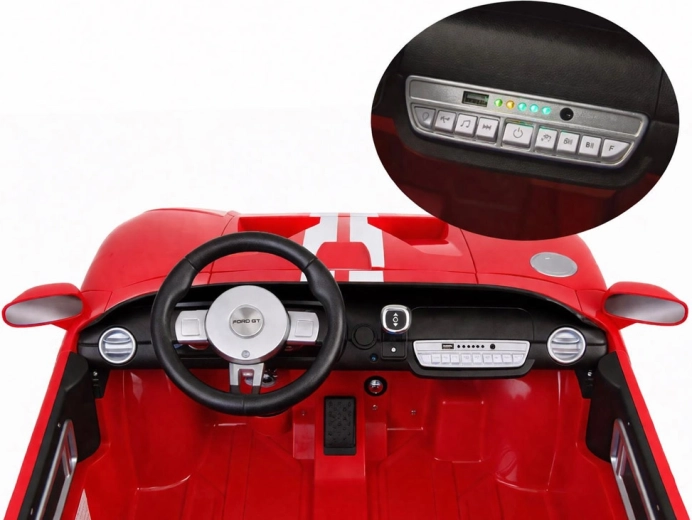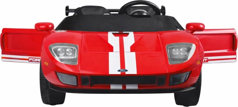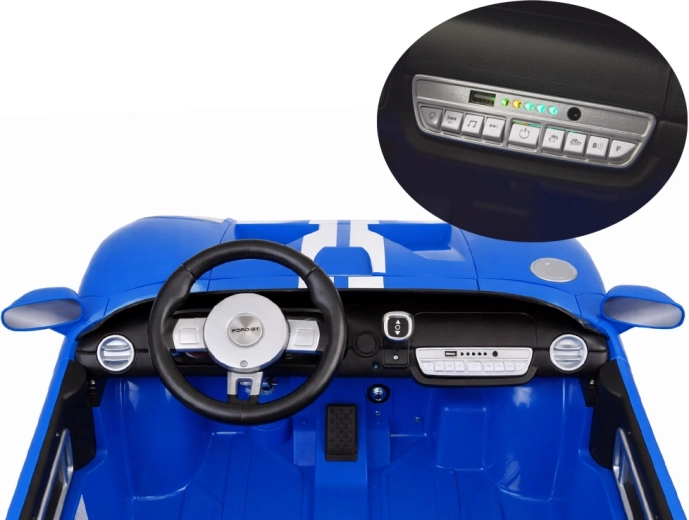 Das stylische elektrische Kinderauto FORD GT mit 24 V Antrieb, 4x4 und zweisitziger Sitzbank bietet ein realistisches Fahrerlebnis. Es verfügt über öffnende Türen, leise EVA-Räder, hintere Federung, sanften Soft Start, LED-Scheinwerfer und umfangreiche Multimedia-Ausstattung (Bluetooth, USB/MP3, FM-Radio). Eltern schätzen die Fernbedienung mit Not-STOP sowie die Wahl zwischen manuellem und Fernsteuerungsmodus.