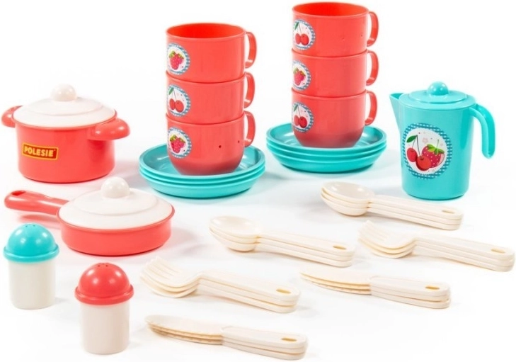 Das Kinder-Geschirrset Gazdinka ist die perfekte Grundlage für Rollenspiele rund ums Kochen und Essen. Dank der 38 Teile können Kinder leicht Rollen verteilen und lernen zu kooperieren, zu teilen und zu kommunizieren. Das Set ist die ideale Ergänzung für jede Kinderküche und sorgt für stundenlangen, kreativen Spielspaß.