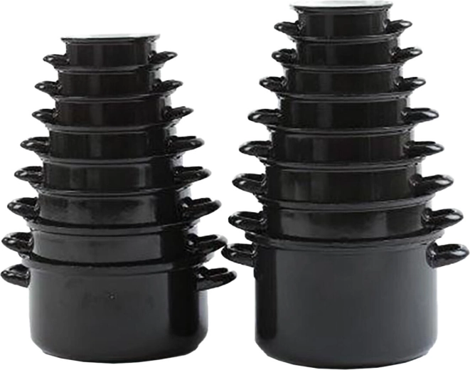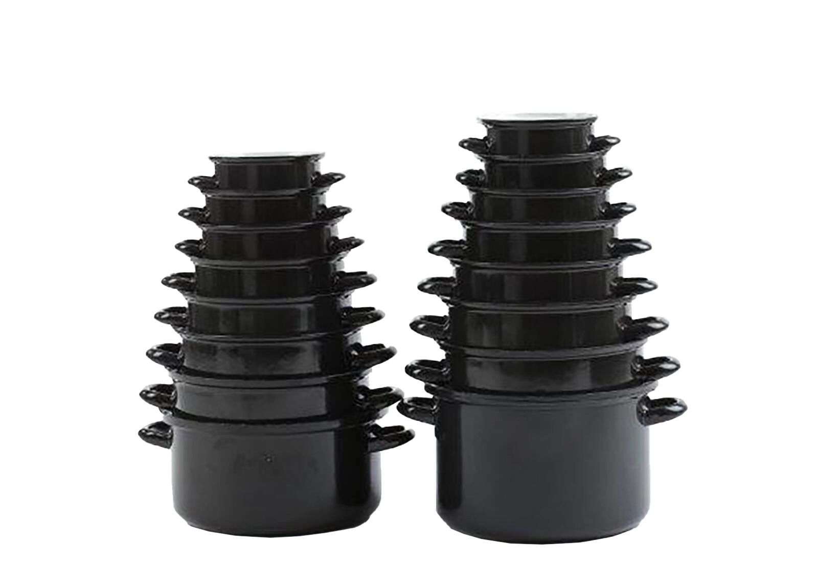 Der Topf Belis Standard vereint traditionelle Emaille mit moderner Funktionalität. Das weiße Granit-Innenleben und die schwarze Außenfläche mit weißen Sprenkeln wirken zeitlos, während das hochwertige Stahlblech mit einer Stärke von 1–1,2 mm eine gleichmäßige Wärmeverteilung für energieeffizientes Kochen gewährleistet.