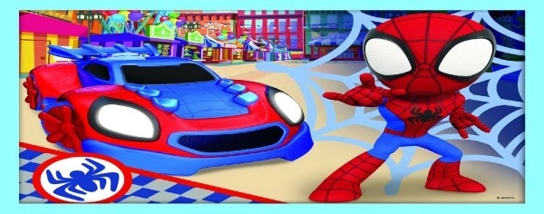 Bunte Illustrationen mit Spidey und seinen Freunden motivieren Kinder zum wiederholten Puzzeln und Spielen.