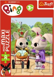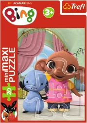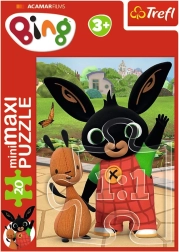 Suchen Sie das erste Puzzle für kleine Fans der Serie BING? Dieses Mini-Maxi-Puzzle mit großen, stabilen Teilen ist eine hervorragende Wahl. Kinder wählen aus 4 niedlichen Motiven und trainieren beim Puzzeln Konzentration, Hand-Auge-Koordination sowie das Erkennen von Formen und Farben.