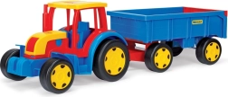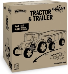 Unser großer Traktor aus der Gigant-Reihe ist mit einem Anhänger mit öffnender Heckklappe ausgestattet. Diese Fahrzeuge sind ideale Spielzeuge für Kinder – ob zum Bauen, Laden oder Transportieren von Materialien. Die bewegliche Schaufel des Traktors dient als Bulldozer oder Lader und sorgt für zusätzlichen Spielspaß. Die Vorteile dieses Traktors sind hochwertige Verarbeitung, Widerstandsfähigkeit und Tragfähigkeit der Konstruktion – der Traktor trägt bis zu 100 kg, der Anhänger 60 kg.