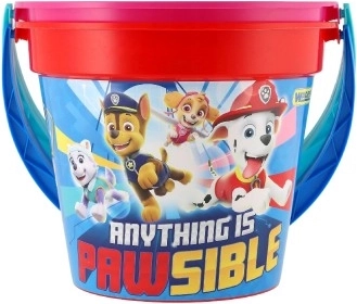 Entdecken Sie die Freude am Spielen mit diesem bunten Sandeimer, der mit Motiven der beliebten Figuren aus der Serie Paw Patrol geschmückt ist. Ideal für Kinder ab 1 Jahr, bietet dieser Eimer stundenlangen Spaß sowohl am Strand als auch im Sandkasten. Er ist leicht und dank des stabilen blauen Griffs einfach zu transportieren.