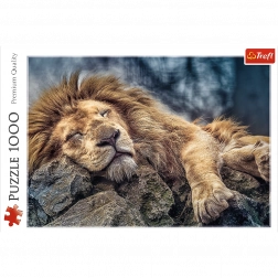 Puzzle mit dem Motiv eines schlafenden Löwen bestehen aus 1000 Teilen und ergeben zusammengesetzt ein Bild mit den Maßen 68x48 cm. Hohe Qualität, lebendige Farben und sicheres Puzzeln werden durch Papier mit umweltfreundlichen Lebensmittel-Farben gewährleistet.