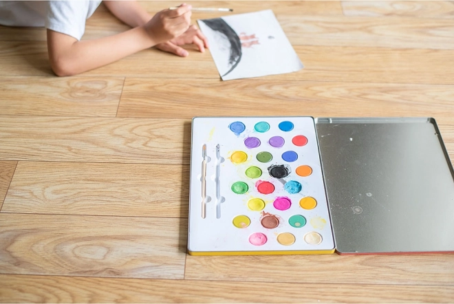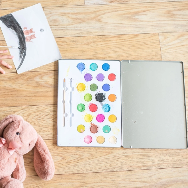 Entdecken Sie die Freude am Malen mit unserem vielseitigen Set an Acrylfarben, illustriert von der schwedischen Künstlerin Ingela P. Arrhenius. Dieses Set umfasst mehrere kräftige Farbtöne, die sorgfältig in einer eleganten Metallbox angeordnet sind.