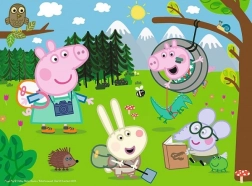 Puzzle Waldabenteuer Peppa Pig sind inspiriert von der beliebten Zeichentrickserie für Kinder Peppa Pig. Dieses große Puzzle aus starkem Karton ist speziell für Kleinkinder konzipiert. Lebendige Farben und schöne Muster von Tieren motivieren Kinder zum Spielen.