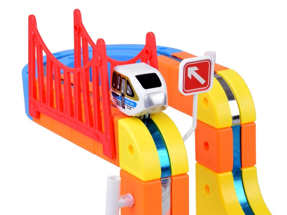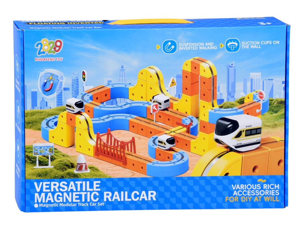 Die magnetische, modulare Rennbahn bietet Kindern ein einzigartiges Fahrerlebnis – das magnetische Fahrzeug bleibt auch über Kopf sicher auf den Schienen und fährt mühelos über Brücken, Kurven und Rampen. Dank der magnetischen Steckverbinder bauen Sie in kürzester Zeit stabile Konstruktionen, ob auf dem Boden, dem Tisch oder mit Saugfüßen an der Wand.