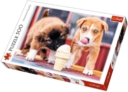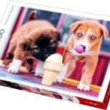 Tauchen Sie ein in die Welt des Puzzelns mit diesem Puzzle, das nach dem Zusammenbau 48 x 34 cm misst. Es erwartet Sie ein Motiv von zwei niedlichen Welpen, die sich ein Eis teilen. Das Puzzle ist aus hochwertigem kalandrierten Papier hergestellt, das hervorragende Lichtreflexion und lebendige Farben bietet.