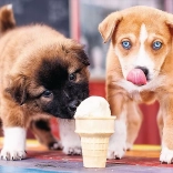Dieses Puzzle wird Sie mit seiner Form und dem Motiv zweier verspielter Welpen begeistern, die den Moment mit Eis genießen.