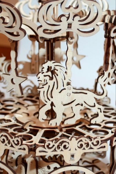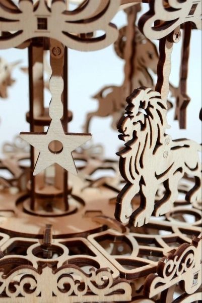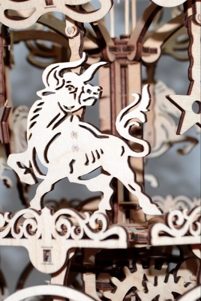 Jedes Teil ist präzise ausgeschnitten für eine reibungslose Passung und eine eindrucksvolle Optik. Ornamente und Tiermotive unterstreichen die Ästhetik des klassischen Karussells.
