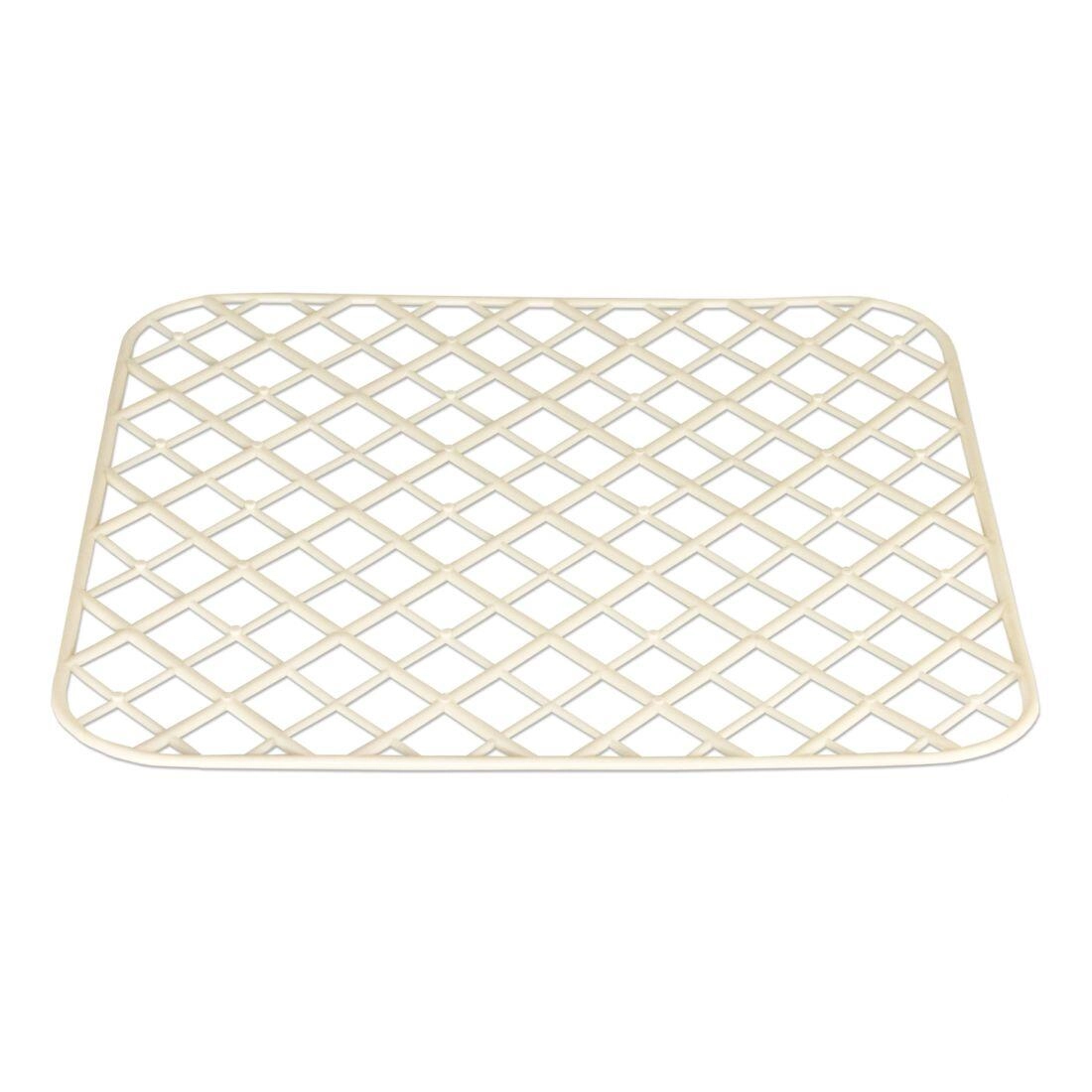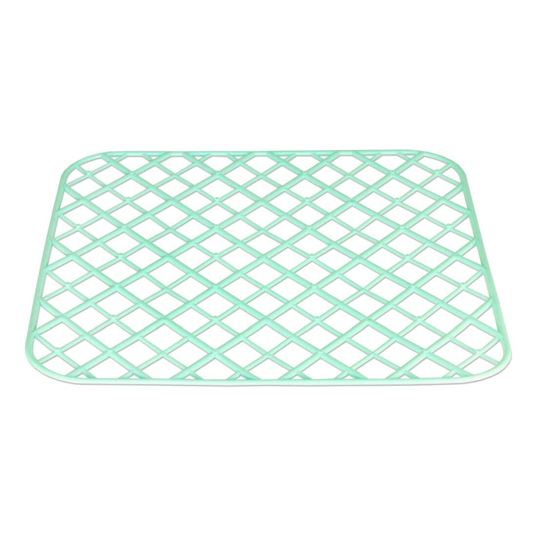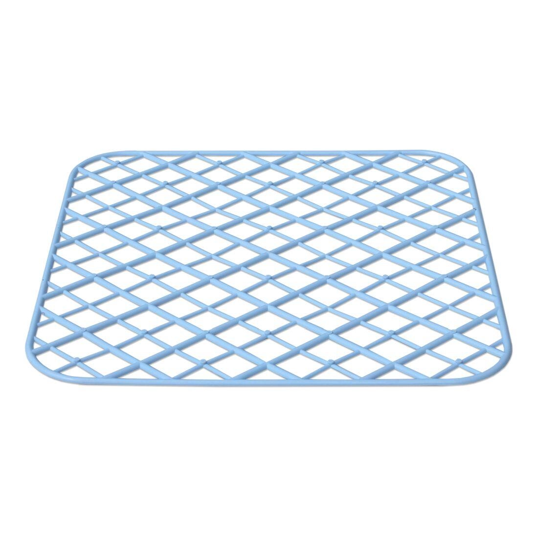 Diese universelle Spüleinlage mit Gitterstruktur verbessert Hygiene und Komfort beim Abwaschen. Das offene Raster ermöglicht den freien Durchfluss von Wasser und Luft, wodurch das Abtropfen beschleunigt und die Schmutzablagerung reduziert wird. Die flexible Ausführung schützt die Spülenoberfläche vor Kratzern und dämpft Stöße von empfindlichem Geschirr.