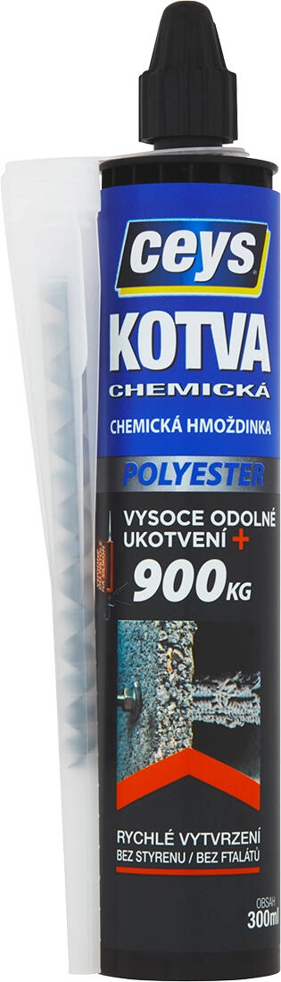 CEYS Chemische Ankermasse Polyester 300 ml ist ein schnell aushärtender 2‑Komponenten-Mörtel für extrem feste und sichere Verankerungen in hohlen wie auch massiven Materialien. Dank fehlender Ausdehnung eignet sie sich für Montagen, bei denen Rissbildung im Untergrund droht, und ermöglicht Verankerungen in unmittelbarer Randnähe.