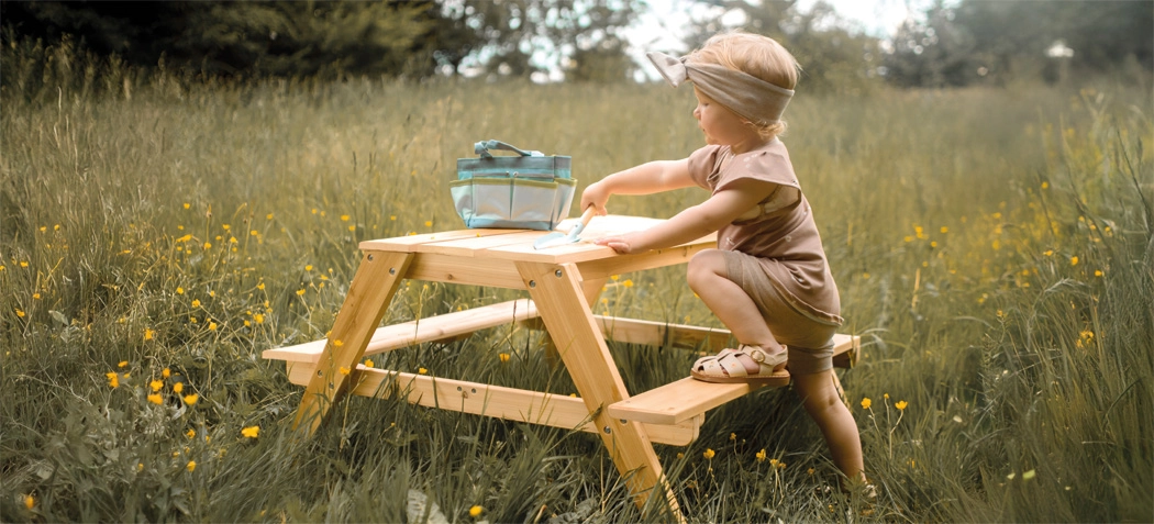 Schenken Sie Kindern ihren eigenen Platz zum Spielen, Basteln und für die ersten Picknicks. Der Kinder-Picknicktisch small foot aus widerstandsfähigem Massivholz überzeugt durch seine natürliche Optik, die stabile A-Konstruktion und integrierte Bänke auf beiden Seiten. Abgerundete Kanten und eine bequeme Sitzhöhe unterstützen sicheres und ergonomisches Sitzen.