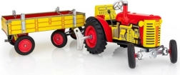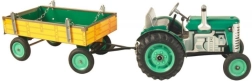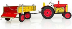 Dieser Blechtraktor Zetor mit Anhänger im Maßstab 1:25 bietet ein authentisches Fahrerlebnis und Sammlerwert. Das einzigartige Federwerk mit Schlüssel sorgt für gleichmäßige Bewegung, und dank des Getriebes mit drei Gängen genießen Kinder eine realistische Fahrt vorwärts und rückwärts. Der Anhänger lässt sich leicht an- und abkuppeln, gelenkt wird mit einem echten Lenkrad, und eine Handbremse sorgt für sicheres Anhalten.