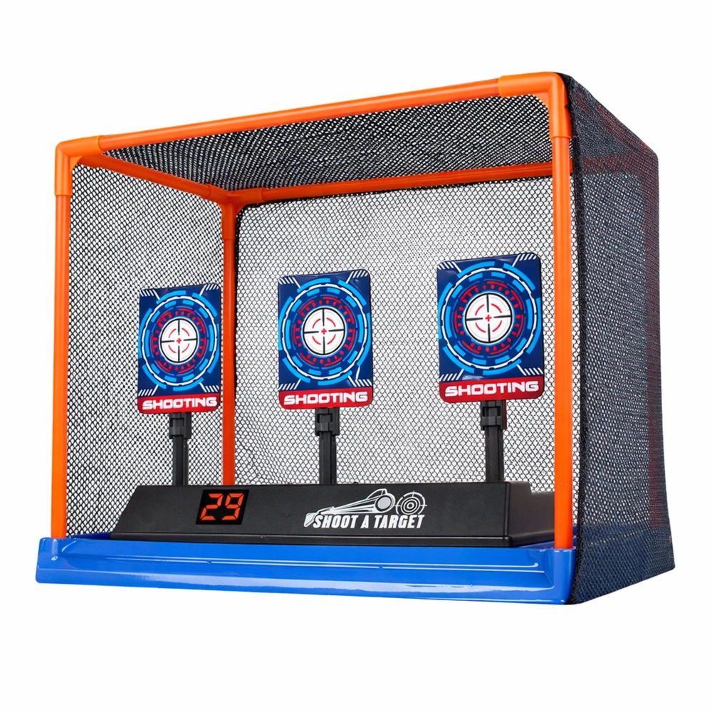 Die elektronische Zielscheibe mit drei Zielen ist ideal für Wettkampf- sowie Solospiele. Nach dem Treffen aller Ziele kehrt sie innerhalb weniger Sekunden automatisch in die Ausgangsposition zurück. Das integrierte LED-Display summiert die Punkte fortlaufend, sodass Sie problemlos Familienturniere veranstalten und Ihre Treffsicherheit verbessern können.