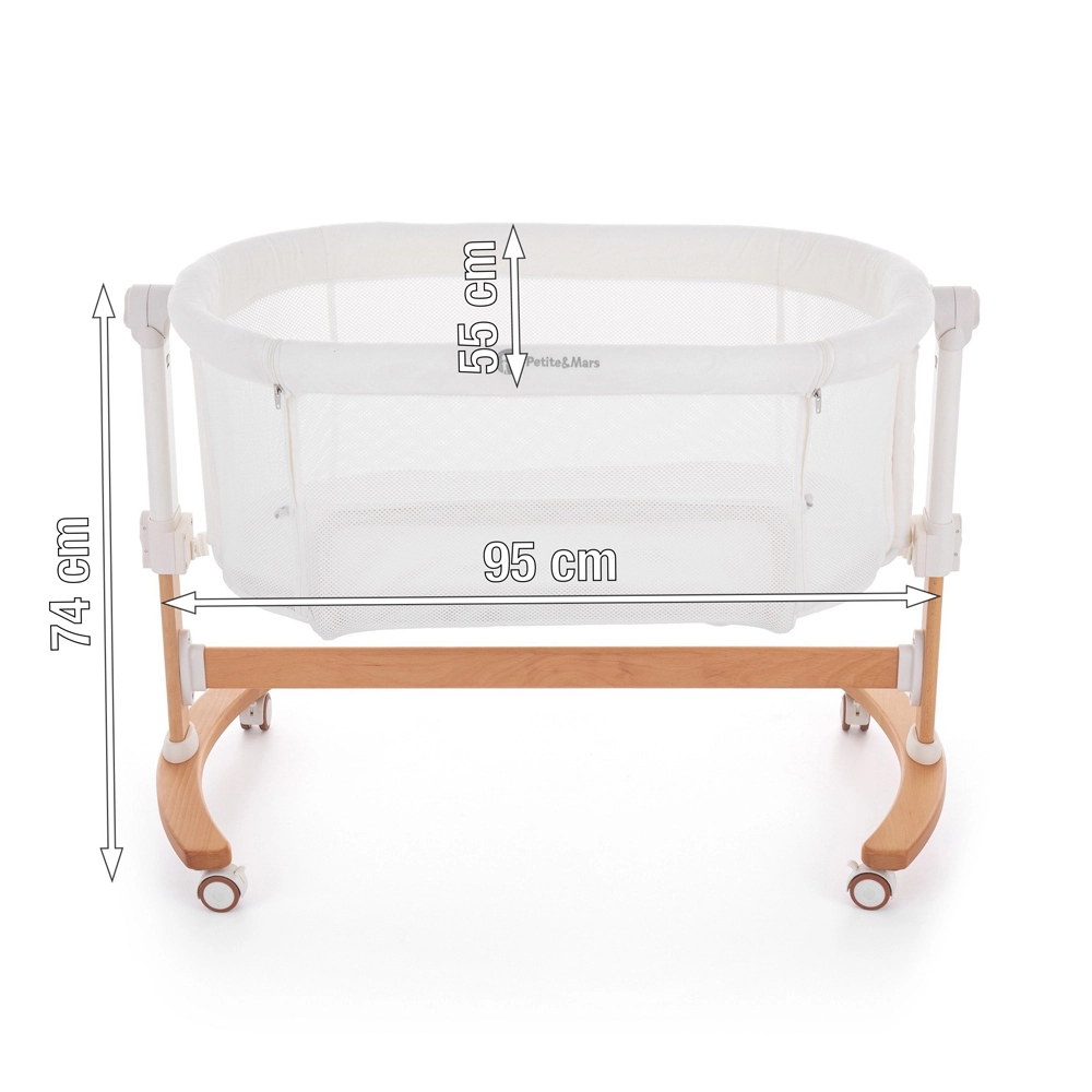 Die abnehmbare Seitenwand und 5 Höhenpositionen ermöglichen das Angleichen an die Elternmatratze, sodass Ihr Baby stets in Griffnähe ist – komfortables nächtliches Stillen und Pflege inklusive.