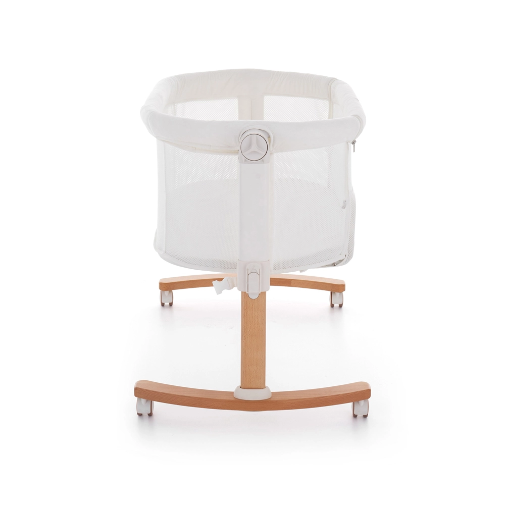 Sanftes Schaukeln beruhigt und hilft dem Baby schneller einzuschlafen. Die stabile Basis aus Buchenholz sorgt für sichere und gleichmäßige Bewegung.