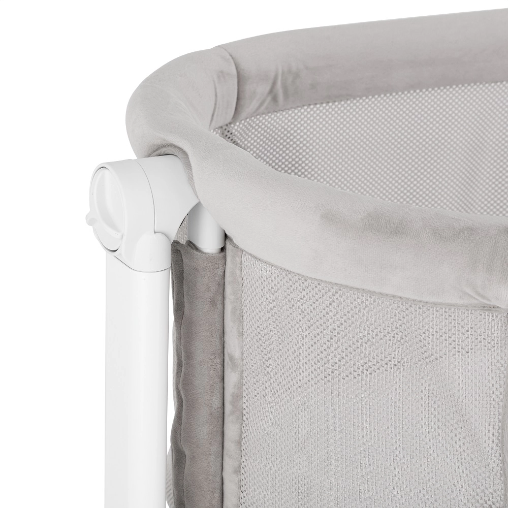 Die abnehmbare Seitenwand erleichtert die nächtliche Pflege und das Stillen. Das Bett kann sicher am Elternbett befestigt oder je nach Bedarf separat verwendet werden.
