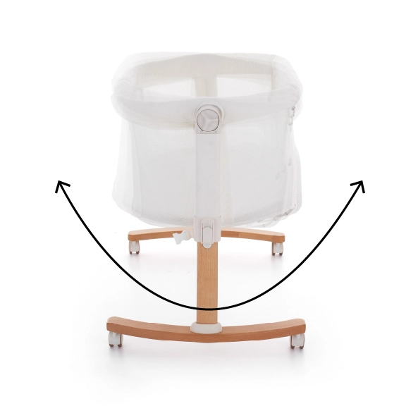 Die integrierte Wiegefunktion hilft dem Baby, schneller einzuschlafen. Die stabile Basis aus Holz mit Rollen und Bremsen ermöglicht sanftes Schaukeln und einfaches Verschieben.
