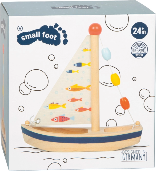 Entdecken Sie den Badespaß mit dem kleinen Holzsegelboot small foot Ozean – einem leichten, robusten und umweltfreundlichen Spielzeug für kleine Seefahrer. Dank der kompakten Maße ideal für Badewanne, Planschbecken und unterwegs. Mit bedrucktem Stoffsegel mit Fischmotiven, bunten Perlen am Mast und ausreichend Platz an Deck für Spielfiguren. Nachhaltiges Material, stabile Verarbeitung und pflegeleicht – nach dem Spielen einfach abtrocknen.