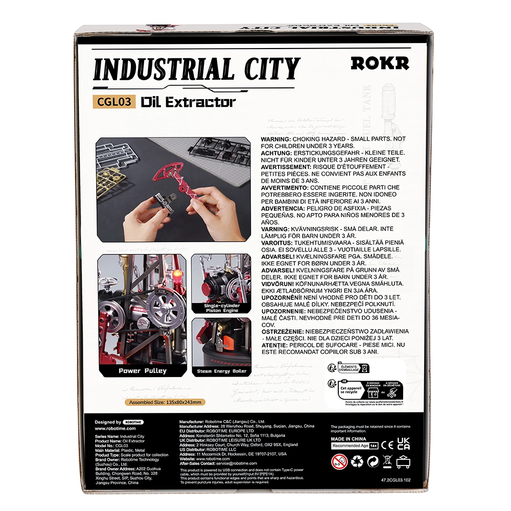 Das Modell ist Teil der Serie Industrial City und wird nach dem Zusammenbau zu einer fesselnden beweglichen Dekoration sowie zu einem Lehrmittel für Mechanik. Dank des mittleren Schwierigkeitsgrads begeistert es sowohl Einsteiger als auch fortgeschrittene Konstrukteure. Die USB-Stromversorgung gewährleistet einen stabilen Betrieb ohne Batteriewechsel.