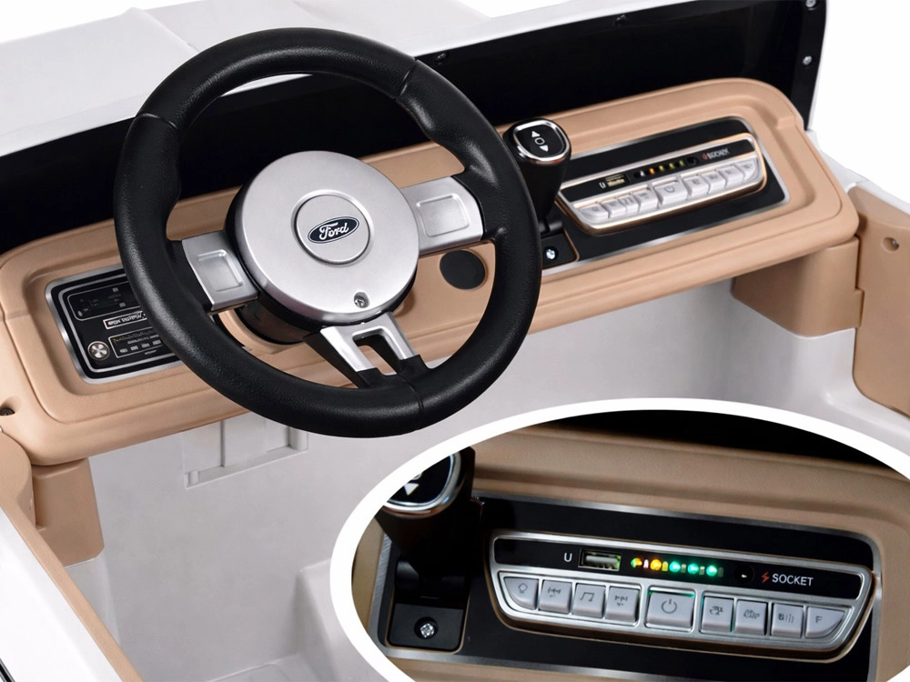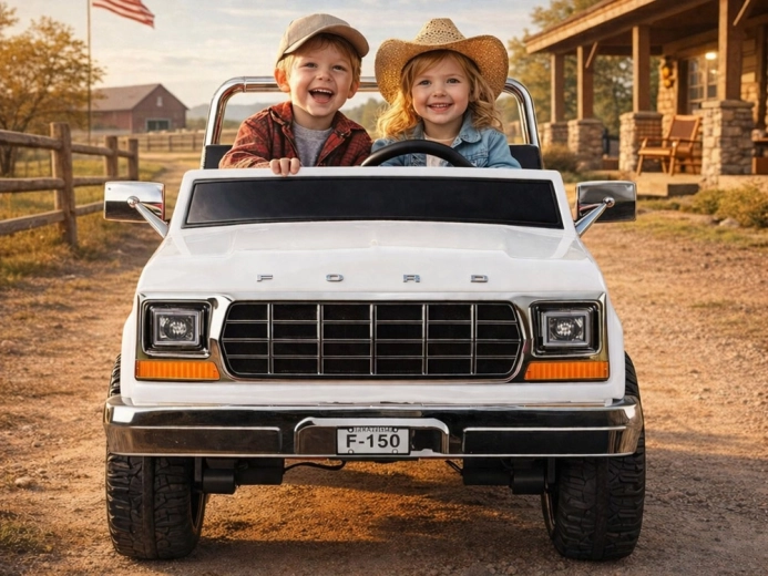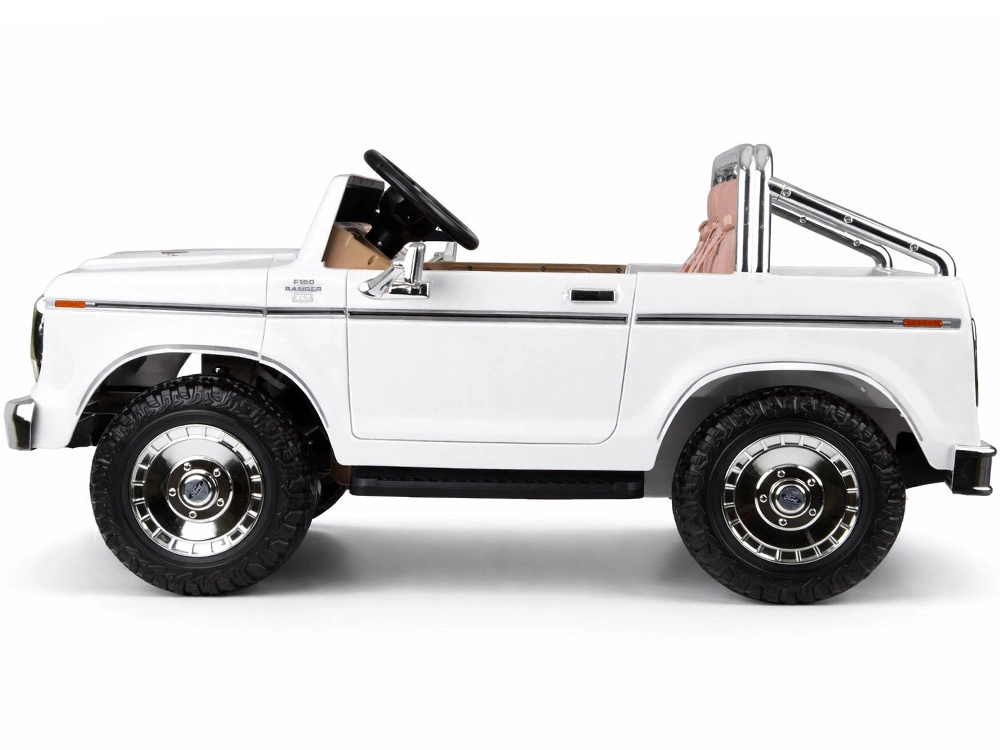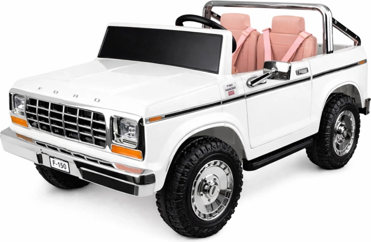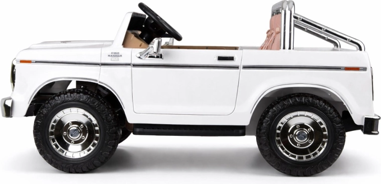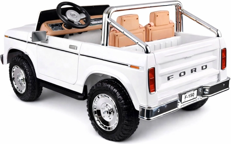 Stilvoller elektrischer Pickup im Look des klassischen FORD BRONCO bietet Retro-Design, Platz für zwei Kinder und eine sichere Fahrt mit Gurten, sanftem Anfahren und automatischer Bremse. Mit öffnenden Türen, eleganten Sitzen, Lichtern und umfangreicher Multimedia-Ausstattung inklusive Bluetooth, FM-Radio und USB/MP3. Außerdem ist eine Fernsteuerung für Eltern enthalten.