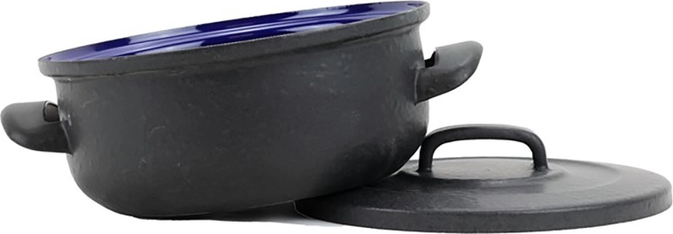 Starkes 2-mm-Blech, hochwertige Emaille und ein klassischer Deckel sorgen für gleichmäßige Erwärmung, lange Lebensdauer und zuverlässige Leistung beim Kochen und Schmoren.