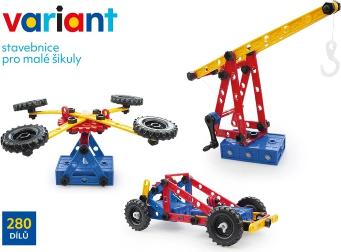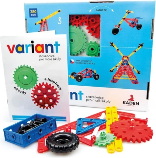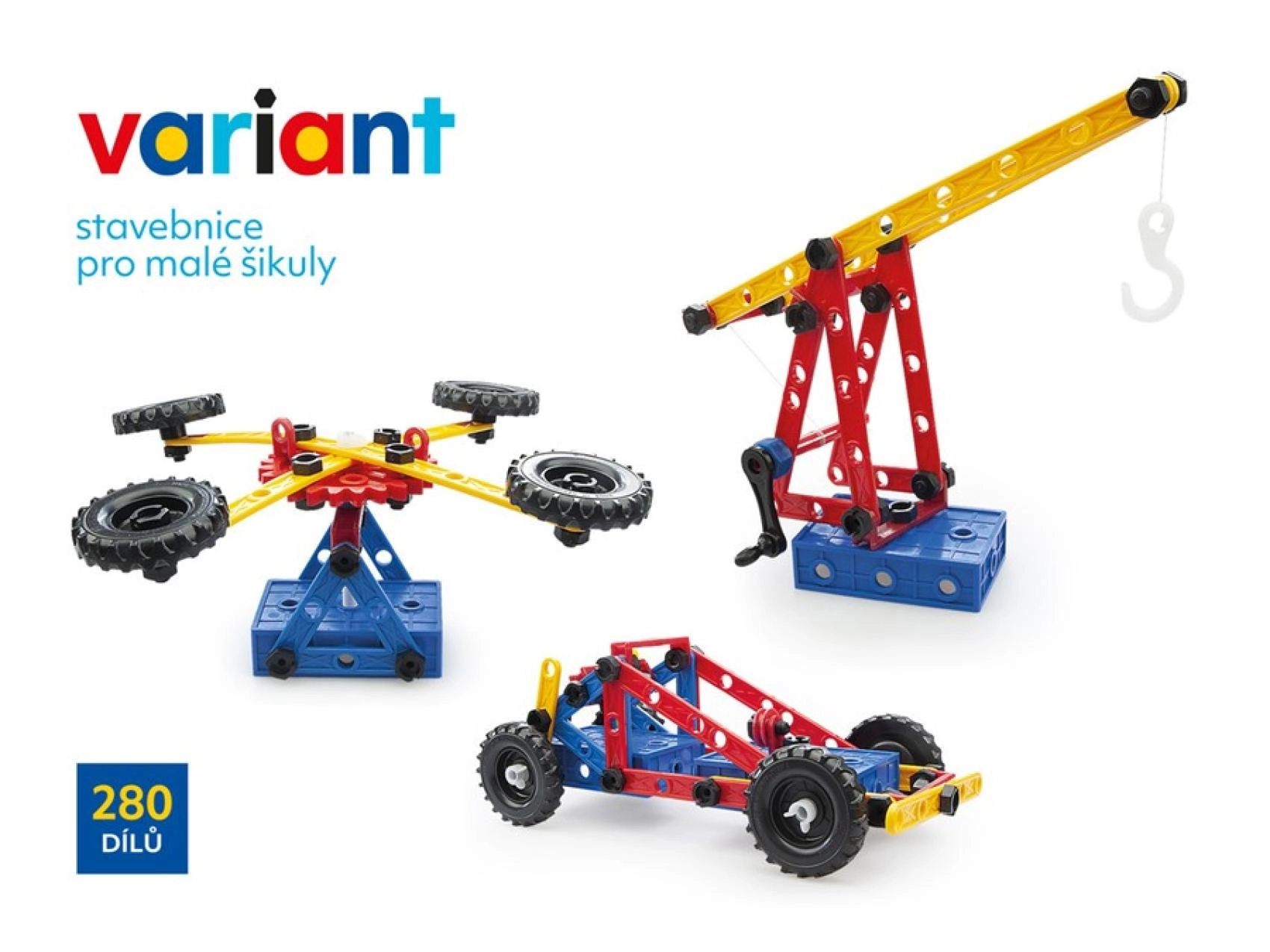 Entdecken Sie die kreative Welt mit dem Plastik-Baukasten Variant mit 280 Teilen, der Feinmotorik, räumliche Vorstellungskraft und logisches Denken fördert. Dank stabiler Schrauben und Muttern, großer perforierter Paneele und Zahnräder mit Kette bauen Kinder Autos, Flugzeuge und Schiffe – immer und immer wieder.