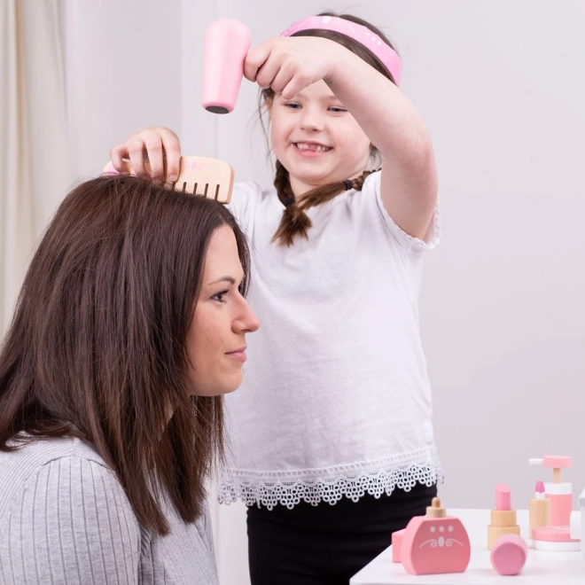 Mit diesem stylischen Set von Bigjigs Toys verwandeln sich Ihre Kinder in kleine Visagistinnen und Friseurinnen. Alle Essentials sind in einem robusten Koffer mit Griffen verstaut, sodass Kinder sie leicht zu Besuchen und auf Reisen mitnehmen können. Die strapazierfähige Holzausführung ohne echte Kosmetik sorgt für sicheres, sauberes und endlos unterhaltsames Rollenspiel.