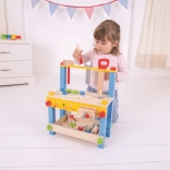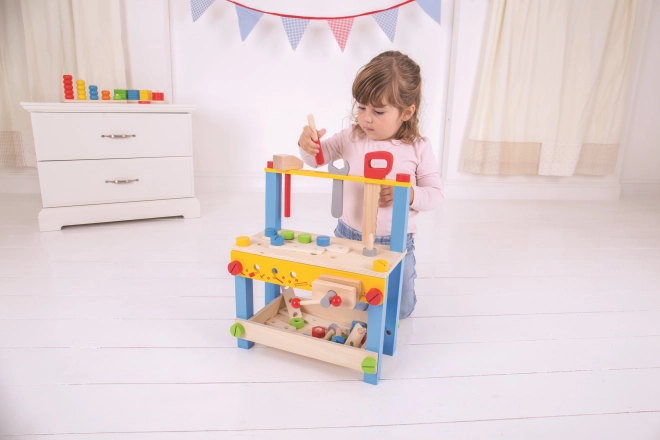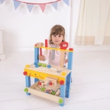 Dieser farbenfrohe Holz-Werkbanktisch von BIGJIGS TOYS ist der perfekte Einstieg in die Welt der Werkzeuge. Dank realistischer Elemente und sicherer Holzwerkzeuge üben Kinder praktische Fertigkeiten und lernen grundlegende Prinzipien im Umgang mit Werkzeugen – spielerisch und sicher.
