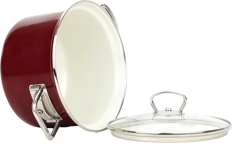 Der Topf ist geeignet für Induktion, Gas, Elektro und Glaskeramik. Dank hochwertiger Emaille und 1-mm-Blech erhalten Sie eine stabile Leistung und lange Lebensdauer.