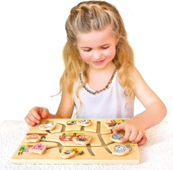 Entdecken Sie den Zauber dieses Holzpuzzles mit dem Thema Bauernhof, das zur Förderung der kindlichen Entwicklung entworfen wurde. Das Labyrinth ist so konzipiert, dass es auf spielerische und interaktive Weise hilft, die Feinmotorik und die Hand-Augen-Koordination zu verbessern. Kinder lernen nicht nur, einzelne Tiere zu erkennen, sondern üben auch räumliche Orientierung und logisches Denken.