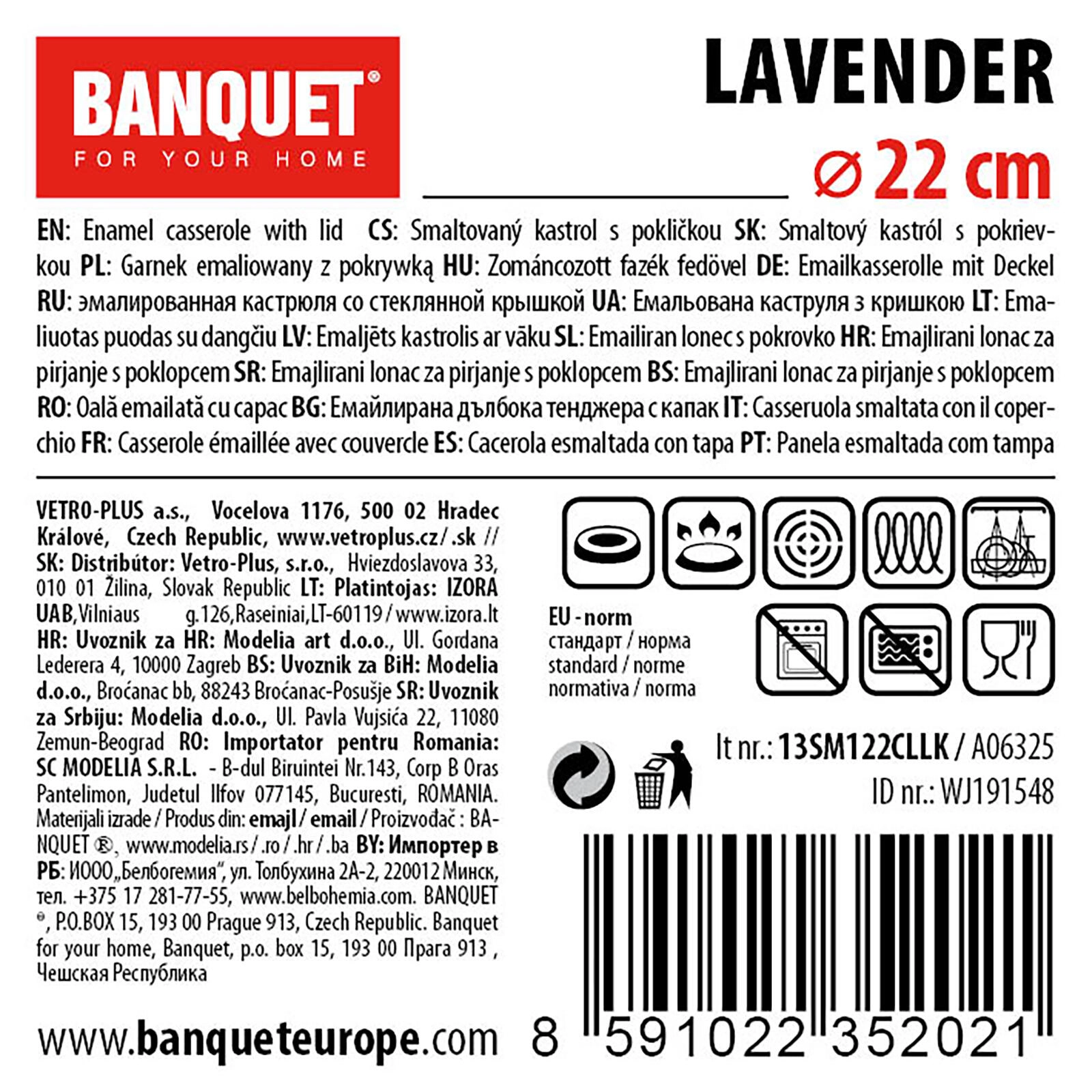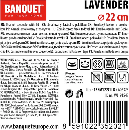 Entdecken Sie den praktischen und stilvollen Kochtopf Lavender, der Ihr Kocherlebnis verschönert. Mit 2,9 l Volumen und 22 cm Durchmesser ist er perfekt für Suppen, Saucen und Beilagen. Die emaillierte Oberfläche mit weißer Glasur ist pflegeleicht und das äußere Dekor verleiht Ihrer Küche eine individuelle Note.