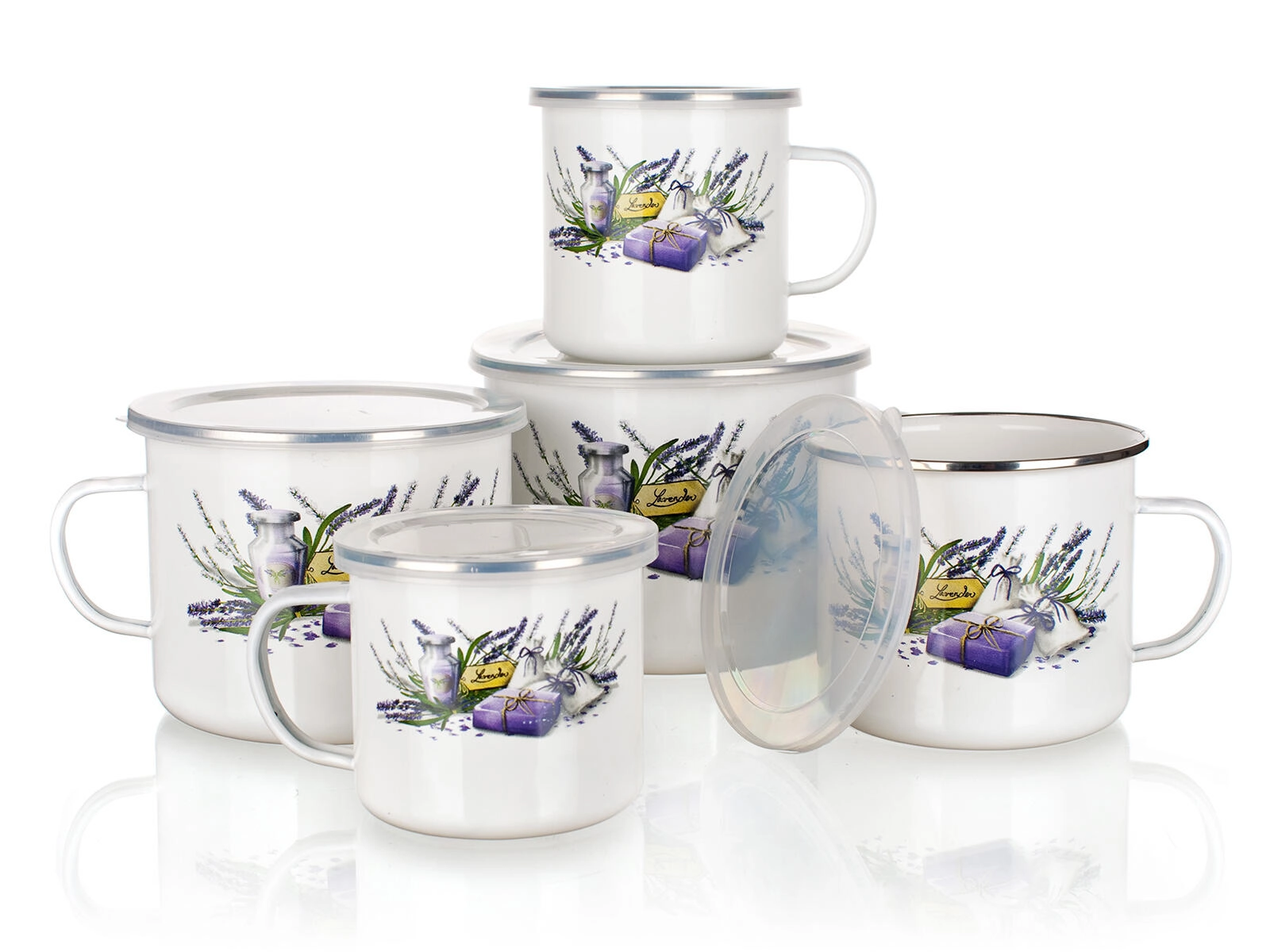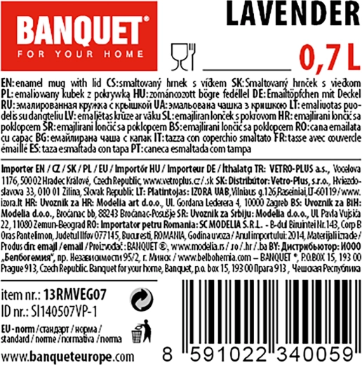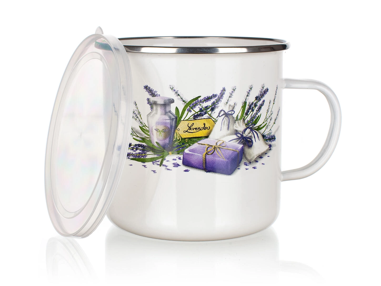 Entdecken Sie den praktischen und stilvollen Emaillebecher mit zartem Blumenmotiv Lavender. Dank des Volumens von 0,7 l ist er ideal für Morgenkaffee, Tee oder Kräuteraufgüsse. Der Kunststoffdeckel hilft, das Getränk länger warm zu halten und schützt vor ungewolltem Überschwappen.