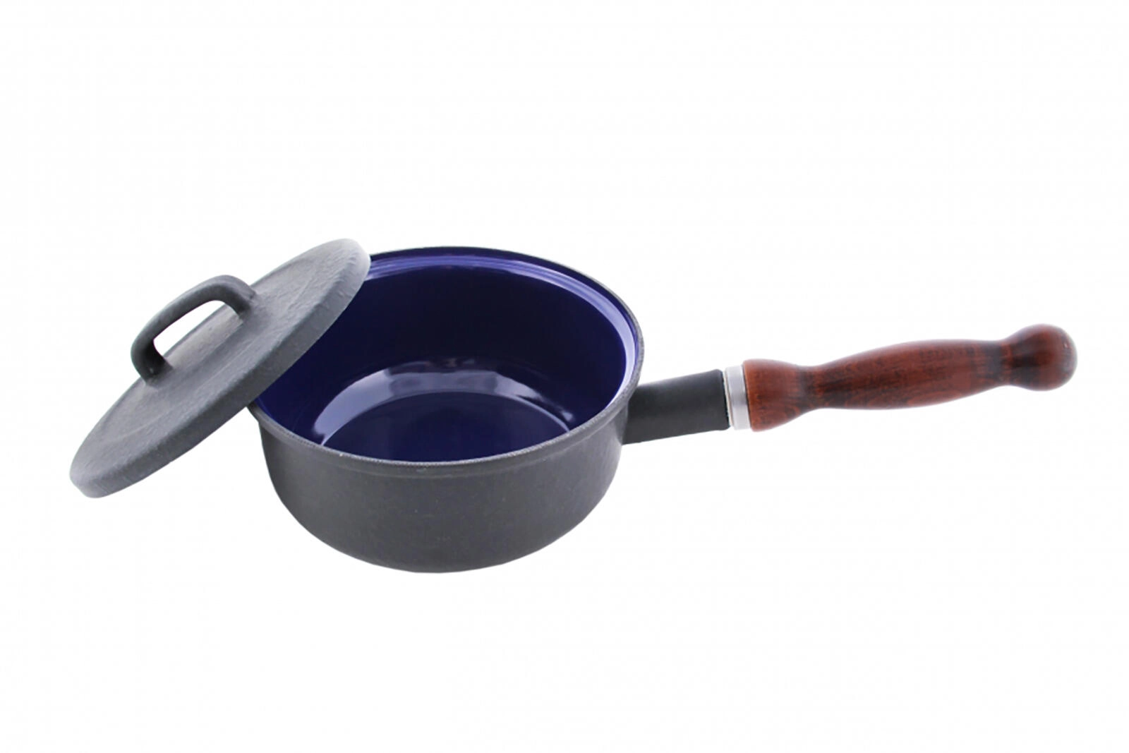 Robuste, glatte Emaille nimmt weder Geschmack noch Gerüche auf, lässt sich hervorragend reinigen und ist gesundheitlich unbedenklich. Die dunkelblaue Innenbeschichtung sorgt für Stil und gute Übersicht beim Kochen.